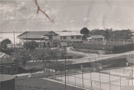 In the junction after this pic were some bungalows, I remember the Pontifex family living there. Instead of turning right at the junction you could go straight past the grocery that pre-dated Hi Lo and where Mike Merry used to go and "lift' our daily supply of fags. On straight over the little railway line round a little cliff past the main jetty on the left, on to the cargo jetty and foreshore below the hill on which all the offices and gun emplacements stood. Long time ago but seems just like yesterday thanks to Richard. If you look closely you will see a picture of a girl walking in the junction outside the club...who was she...what was she thinking about.