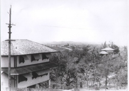What a place to start, the old PaP club in La Carriere. I have vague recollections of it being near the gasoline bond and of it burning down. More clearly though are the memories of the squash court that still stands but unused, and can be see in the pic in the lower left corner. Turn right at the junction after this pic up the winding road that went up past a WWII bunker, a bachelor's house (chickens in a triangular shaped pen...Alan Carty??), up past the local office, round the tight climbing corner past the shipping office, past the big offices and naval gun emplacement sites, the geological office/lab and Ajax road leading to the bathing jetty and Yacht Club.
