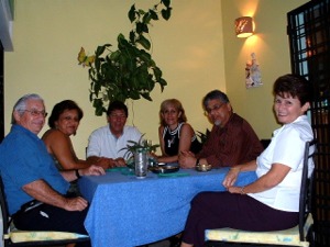 After a sumptuous dinner cooked by the Dons and our helper Anne-Marie Basdeo, one of Maraval's lovely people, the "sit-at-the-table-brigade" groan politely at having to pose.
