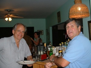 Don't get too far from the bar now....not even for dinner......Barry Carr-Brown and Rick Pontifex get ready for an after dinner drink.