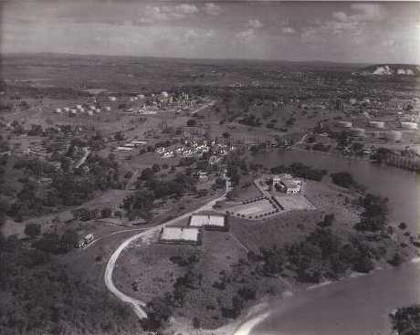 Wow!! what a wonderful old shot......I mean a real old shot of the PaP club. Note how untouched San Fernando hill is, No pool and pool verandah, no squash courts, no "Club Road", No new tennis courts, no No8 Topping, De Sulfurization unit or 4VDu, no central steam plant, no No5 reservoir. What are the long buildings behind No1 Mess just about where the Endridge tennis courts now would be. Fabulous shot...compare to the one following which unfortunately has a closer focus. Thanks to Geoff Pallant.