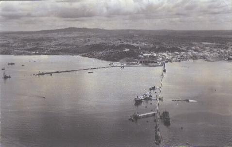 Where better to start than over the Yacht Club and part of Carib Valley. In trying to age the picture I can only notice that the last house that the Cartys lived in near the gate in La Carriere is already gone so the picture is not real old. The Augustus Long Hospital is clear in the top right corner of the pic. The end of the Yacht Club jetty is not as it is today, and the raft is there off the beach.