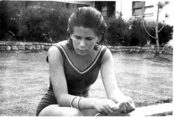 Nice picture of a pensive Marguerite Leotaud (now Macindoe) sitting near the pool at the PaP club.