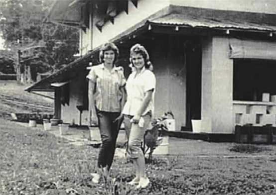B&W pic of Carnival at Naparima Club (mid 50s) - Wayne Darling (w crutch), Angela, Doris Cook, Susan Martin, Sheila Bakey (behind her), John Downer (in front), Anita Nicol, Anne MacNeish (at back - tall one), Jane Downer (in front), Pauline Nelson, Barbara Jardine (in front), Lesley Cook, Angela's sister Elizabeth, Phyllis Nicol (the tall one behind her), Alison McKay (in front), Catherine Barr, Anne Bakey (behind her), Penelope Fern (the tall one), Eleanor Cox (in front of her), Richard Carruthers, Graham Wilson, John Springer, wee Archie Cox, and Larry Devin. Thanks again Angela.
