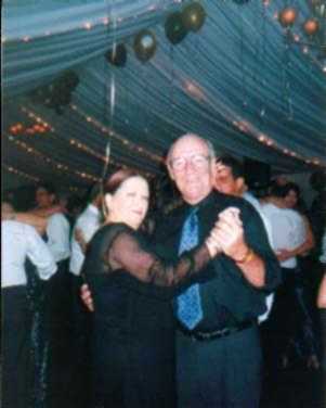 Hugh and Sue Robertson take a moment away from their duties to have a quick 'Foot push".......they were chief judges in the "hugging-up" competition waging wildly behind them as they dance.
