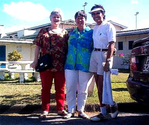 As we drove up to the club nearing the end of our PaP tour I saw Sandra Montano (Charles) coming in from a round of golf and asked in general terms "Do you remember Sandra Charles"....well quite a shout went up.....Yes we do!! It was great to see Karen and Stephanie Whitburm meet and embrace Sandra who knew them immediately. Guess that this is what the whole PaP site is all about, and in a turn of poetic coincidence the brief but happy reunion took place in front of the club. Must admit that in my quest for subject and composition I lost the light and this is not a really a good picture, but it does capture a happy and rewarding moment.
