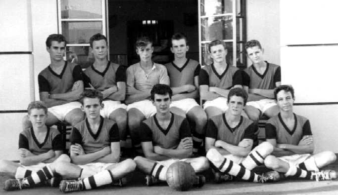 This handsome lot was the school football team in 1960. Look at the old leather football and pegged boots...great stuff.