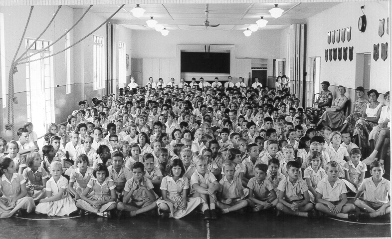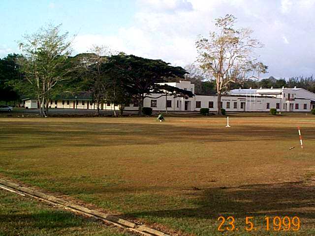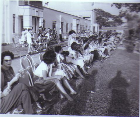 Lovely pic sent in by Geoff Pallant. Don't recognize anybody so kind of tough to date. Can see that the electrical substation on the hill in the background is not yet built but the bamboo patch is gone so maybe the seventies?? There is what appears to be an old style "horn" type "loud-speaker" mounted on the parapet just next to the library.....racking my brains to see if I can remember sound at sports day and all I can remember is the House Colours (flags) moving up and down announcing who was ahead...seems that there was also a scoreboard and come to think of it also a PA system on the table in the little pipe shed. Was as much interested in the people who shadowed the high jumpers as anything else......always a big laugh for us horrible types.