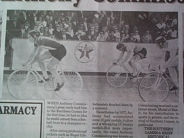 One of things that Seeks was widely known for was his riding ability......one of the top National riders he is seen here in this shot of Southern Games pushing through the outside in pursuit of a British rider and Trinidad's Roger Gibbon.