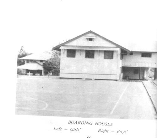 The Boarding House was a big part of the whole 4 Mess story and it was here that my romance with The Vatican started. I remember skootch against the boys dormitory front wall, here painted with a benign line for tennis practice. The cave bed in the end dormitory was just behind and to the right of the window at the right of the three......an urgently whispered "Cave! Cave!" after lights-out would bring a stealthy but quick end to whatever illegal activity was taking place in the dorm. I'm not sure if Mr.Stead ever realized that turning out the light in his apartment which we could see under the door gave advance warning of his intent to sneak in even though we could not see him in the corridor with the lights all off. I don't remember where the line was drawn but a big part of the initial challenge of the Vatican was that it was out of bounds for the boarders.